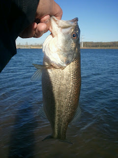 A good starting tip that I learned from my club boater, Mike, on Saturday was that the spawning period for the lake was usually in mid May. This was one of the key points that I had to soak in because it told me several things...that the males are starting to move up to spawning areas, and the females will probably be lurking in some deeper water or might have started moving up depending on the portion of the lake they are in and the water temperature. Water temperature on Saturday was about 56 to 59 degrees depending on the time of the day which was perfect for most lures that I wanted to use. Water clarity was varied again depending on where you were at, but you could see about 1.5 - 2 feet down. This wasn't great so I knew that brighter colors or really dark colors would have to be key.